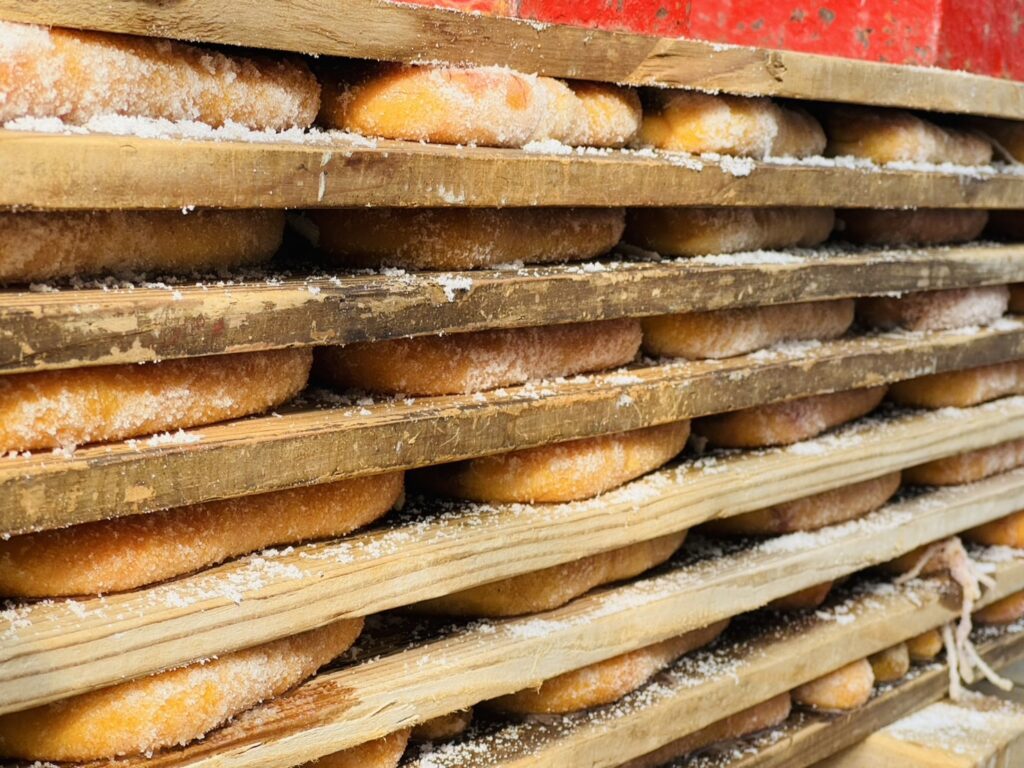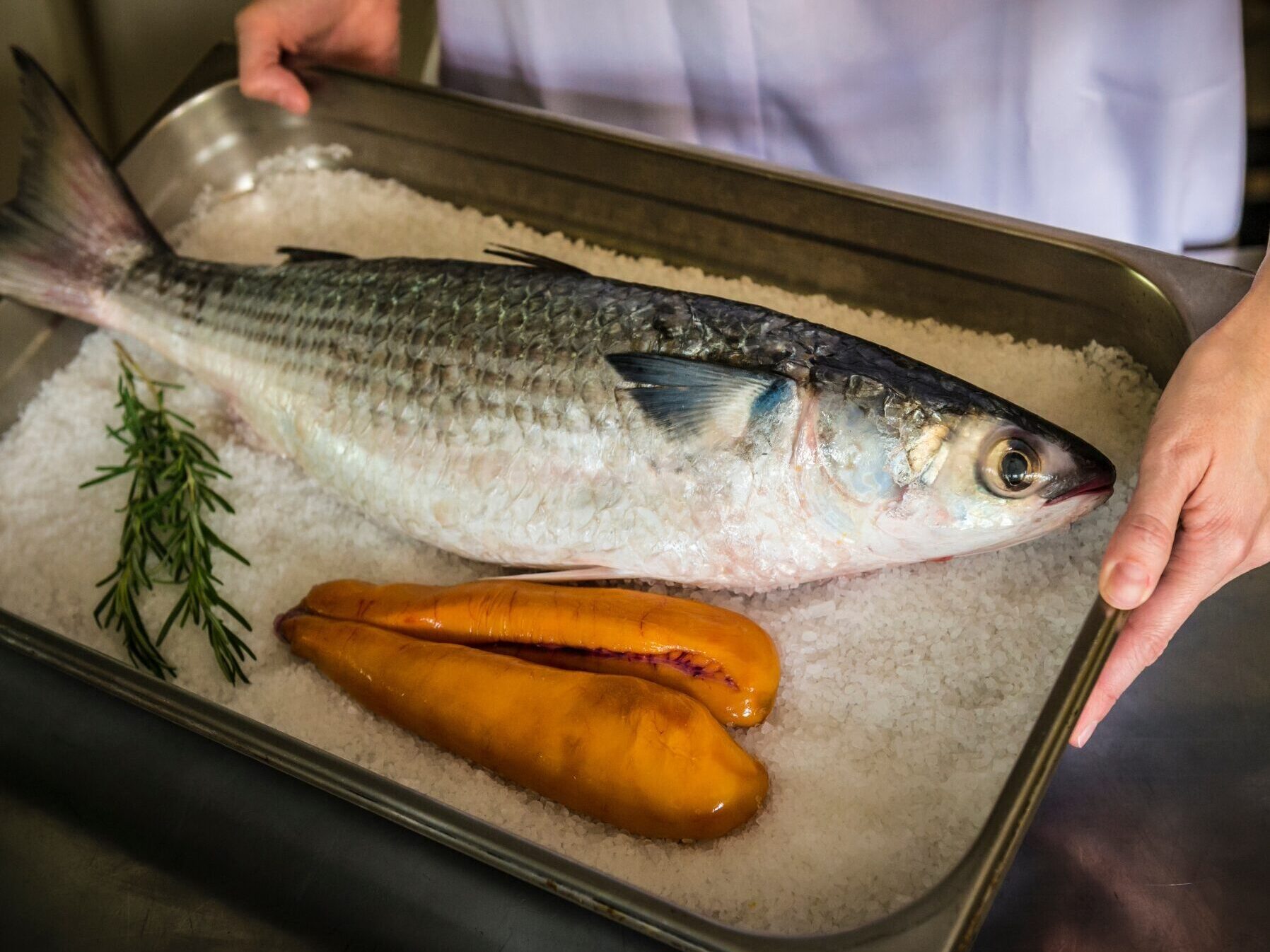 鹽漬是烏魚子的靈魂。我們傳承三代的獨家黃金比例,讓烏魚子保有魚卵本身的香氣與柔嫩,不死鹹、不嗆口,是多年累積經驗與時間淬鍊的結晶。